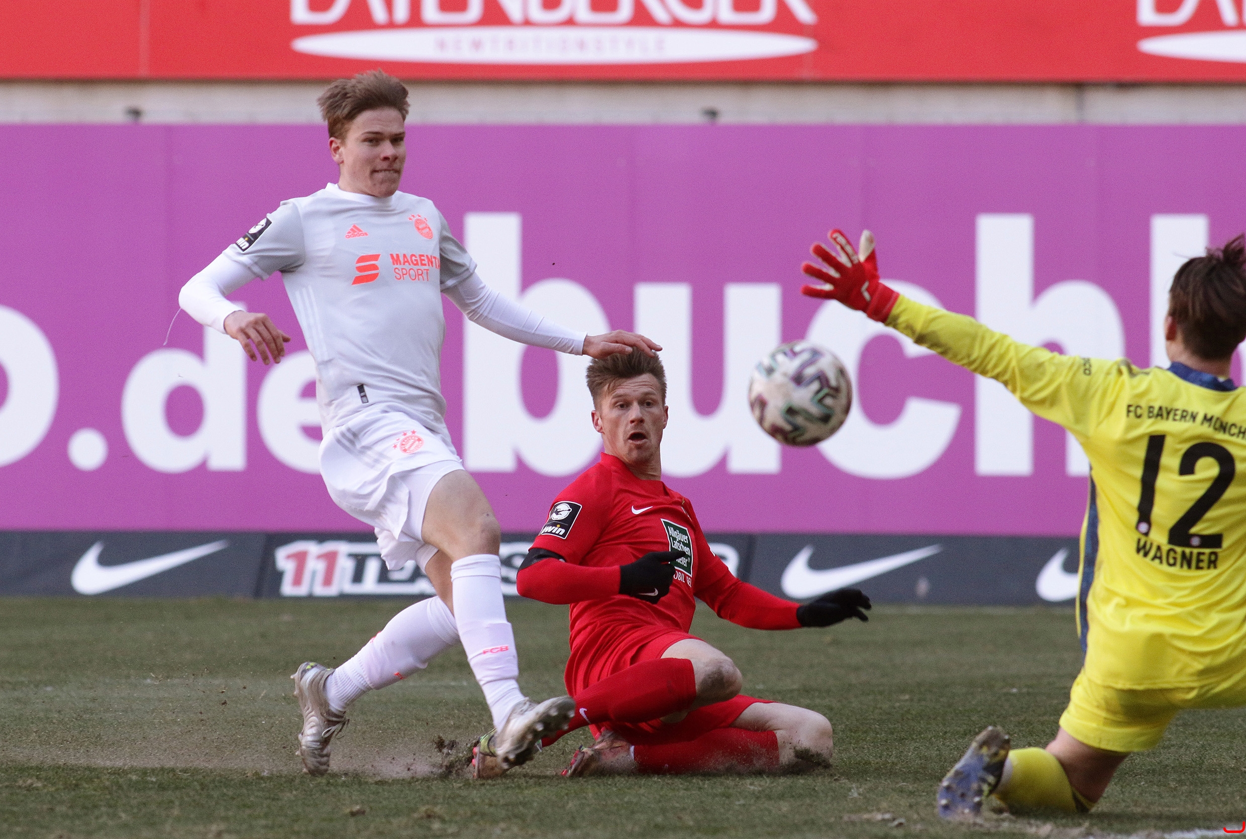 1. FC Kaiserslautern gegen Bayern München 2 - Kurz vor Schluss vergibt Marvin Pourié (Mitte) eine Großchance.