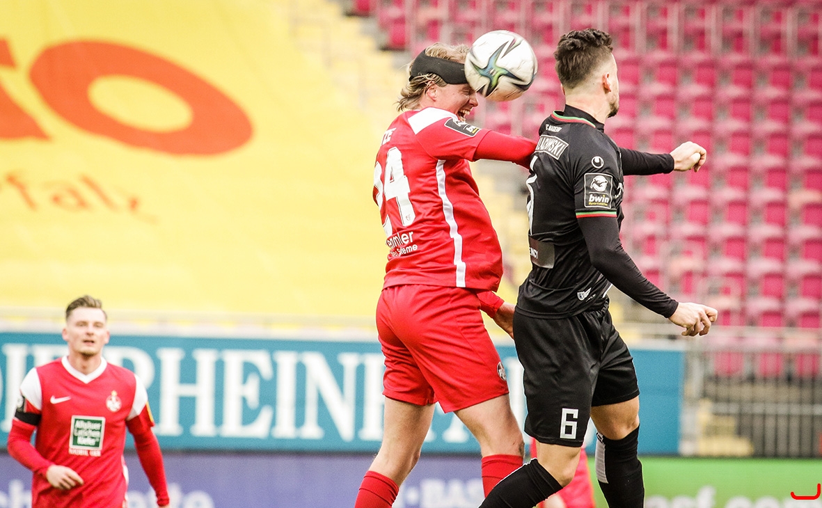 1. FC Kaiserslautern gegen 1. FC Magdeburg - Felix Götze (links) im Duell mit Adrian Malachowski.