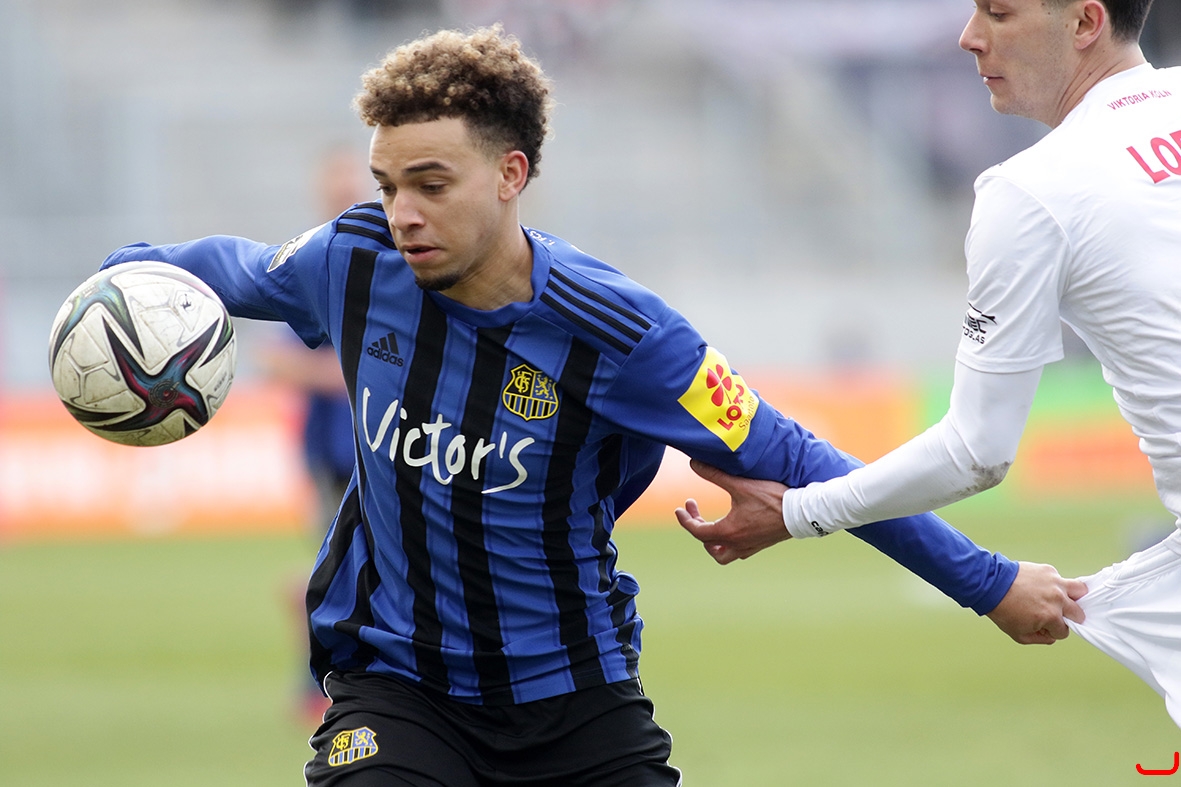 1. FC Saarbrücken gegen Viktoria Köln - Jalen Hawkins (links), Jeremias Lorch